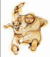 نکته قابل تامل دیگر نیز در روان شناسی این تصاویر است. مرد را موجودی ظریف و کوچک و کچل نقاشی کرده اند و زن را درشت و گنده و چاق!